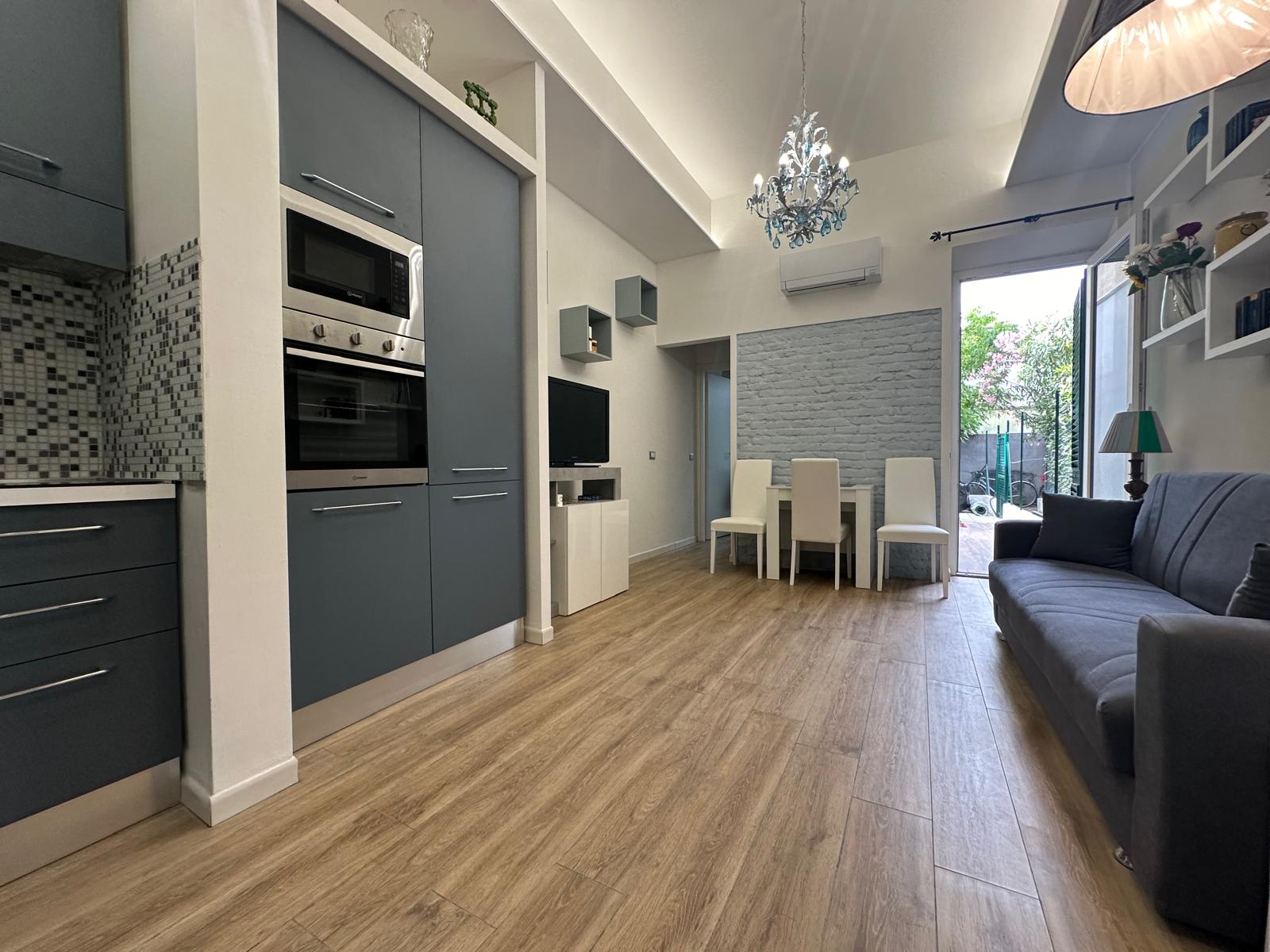 In piccolo condominio al piano terra si propone appartamento con giardino privato composto da camera matrimoniale, studio/cameretta con letto a castello, soggiorno-cottura, bagno e corte esterna perfetta per mangiare all’aperto durante l’estate.