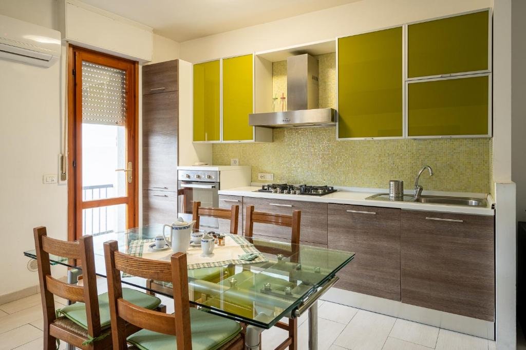 L’alloggio é composto da ampia sala con cucina, due camere matrimoniali, bagno e due balconi.