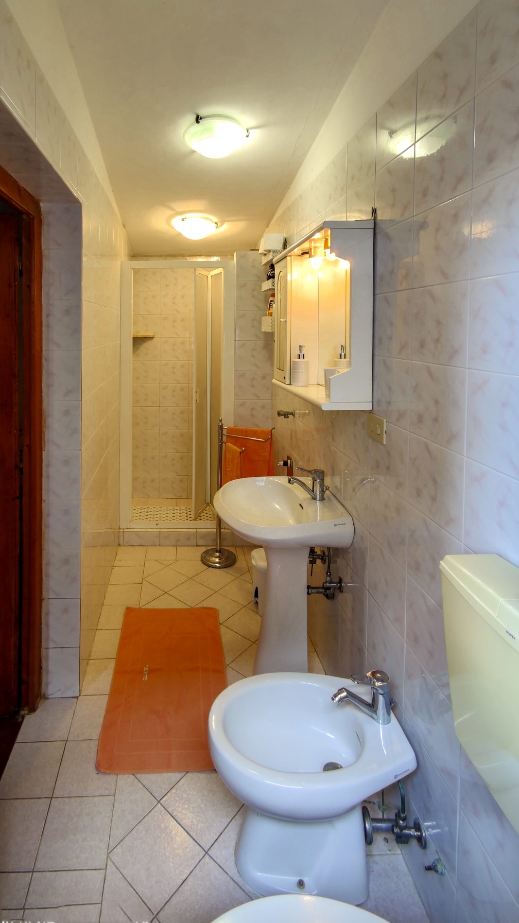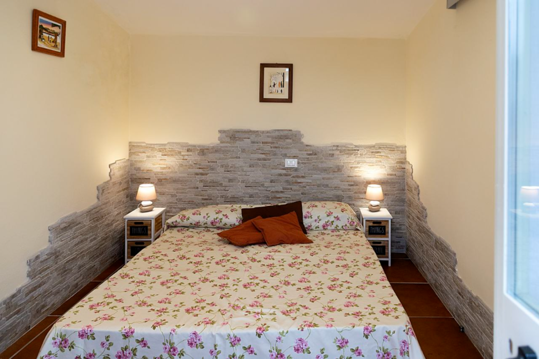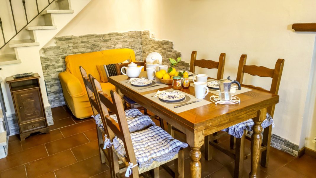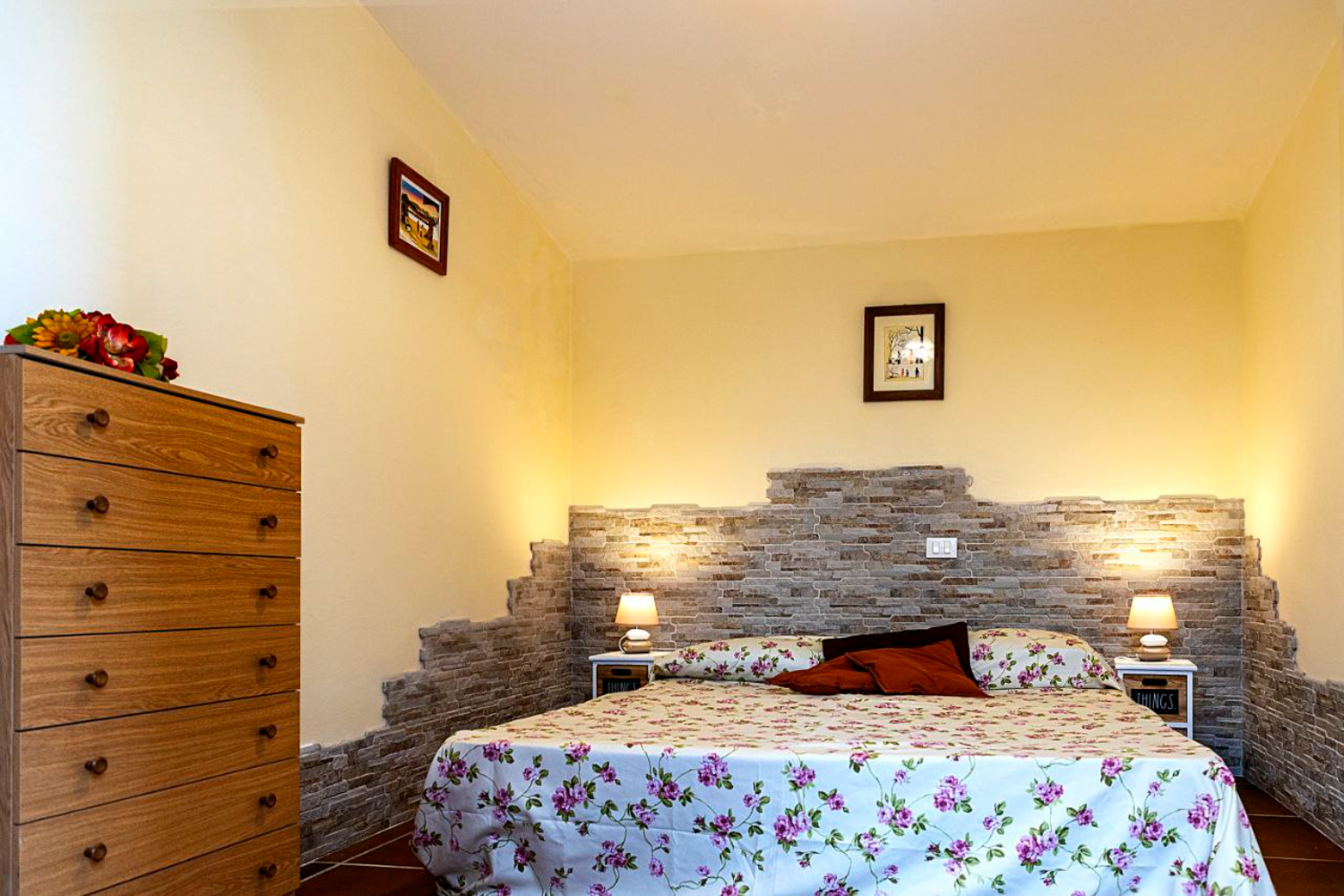 Piano terra: ingresso con cucina, tavolo da pranzo e divano. Al piano superiore camera da letto matrimoniale con piccola terrazza panoramica e un bagno con doccia. Al secondo piano 2 camere da letto singole. Di fronte all’ingresso dell’abitazione c’è un piccolo cortile attrezzato per pranzare fuori e si trova anche una dependance di circa 25mq con divano letto matrimoniale e bagno con doccia.