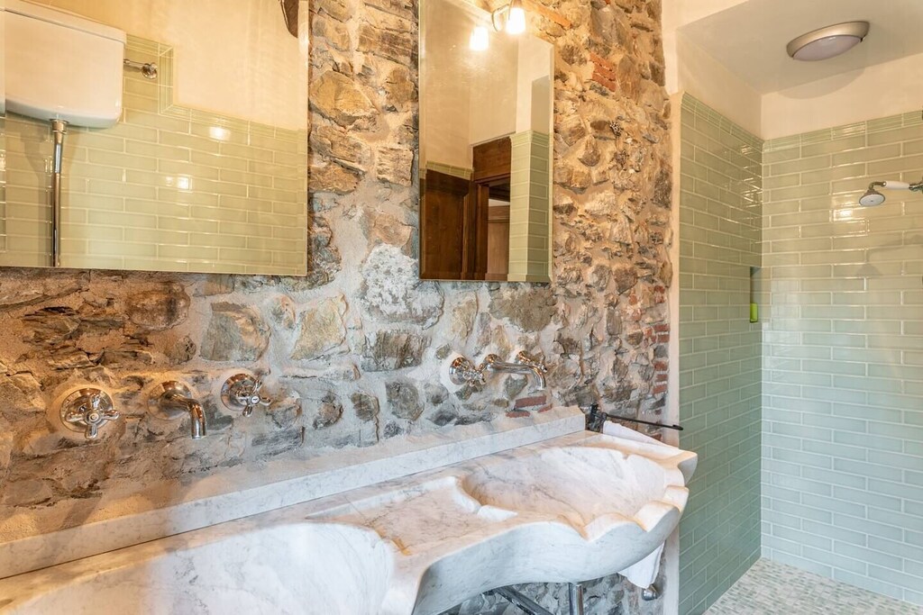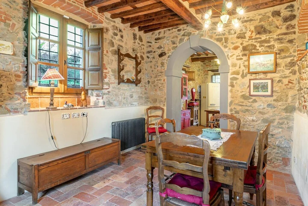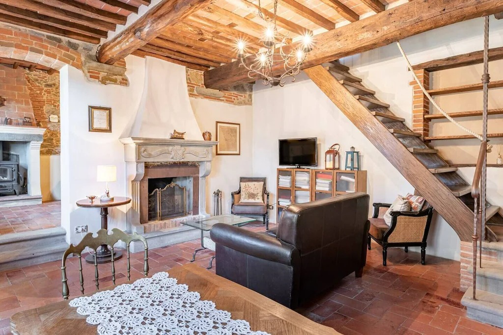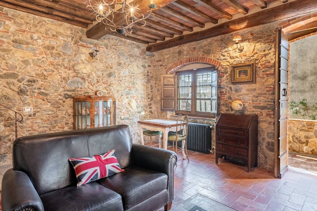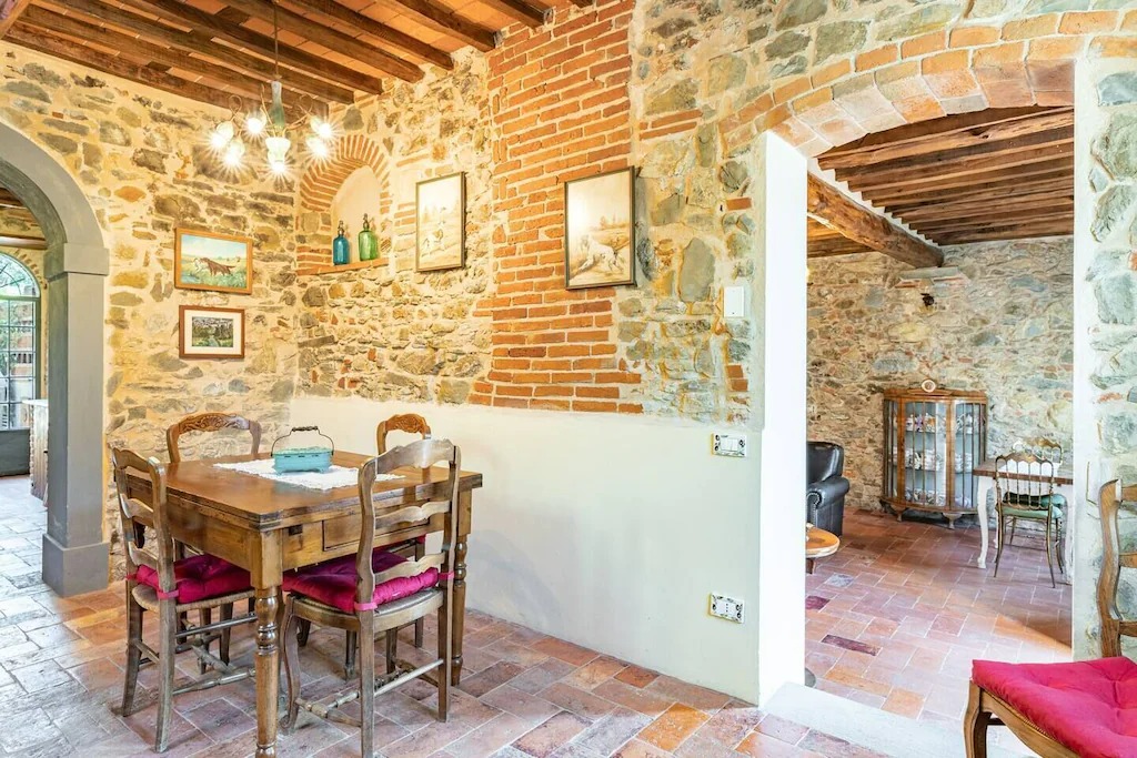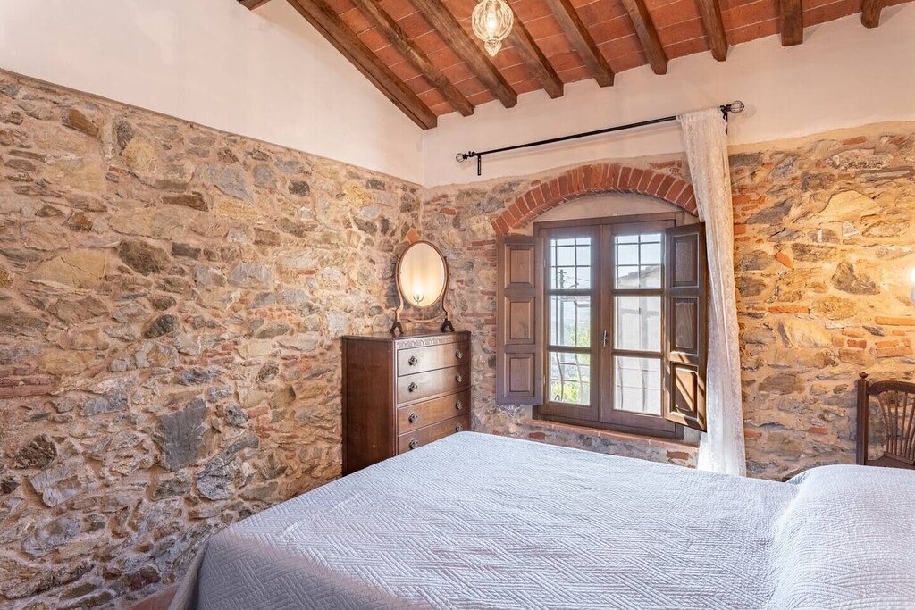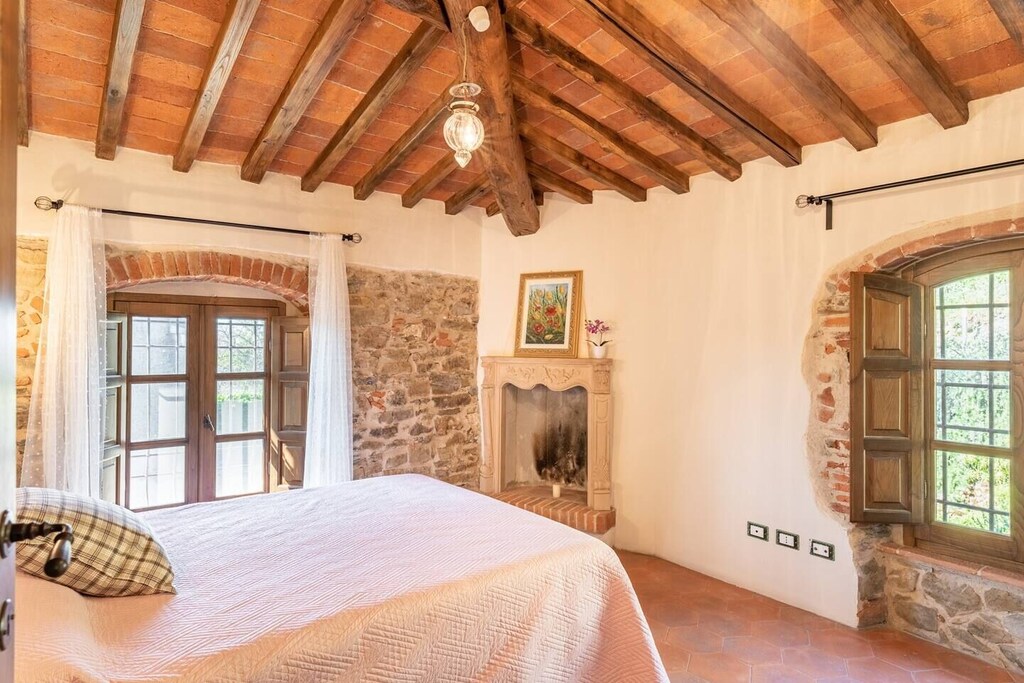 BOTRICI – MASSAROSA. Villa Pera ha i tipici connotati del casale toscano in pietra e mattoni che i lavori di recupero hanno rispettato e valorizzato. La zona giorno con le ampie volte a botte in pietra, il cotto del pavimento, il caminetto e i travi in castagno restituisce perfettamente il calore e l’accoglienza caratteristici di questo edificio;