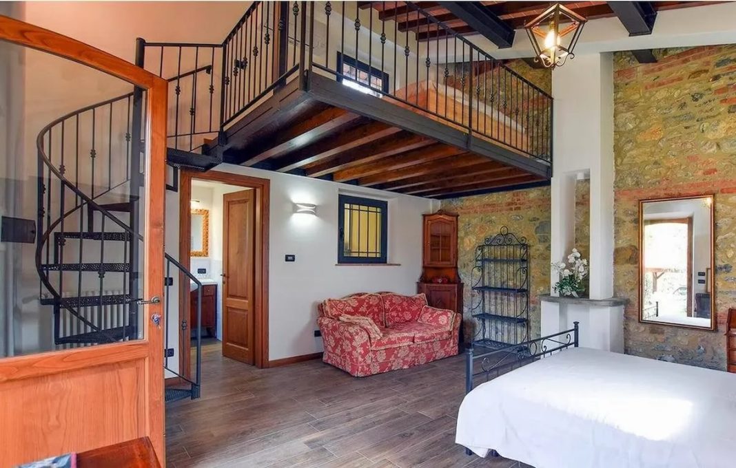L’altra struttura è composta da un’ampia camera matrimoniale con anticamera e bagno con doccia. Una scala a chiocciola conduce ad un soppalco aperto con letto matrimoniale.