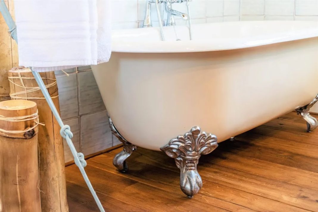 Al primo piano ci sono due camere matrimoniali, entrambe con bagno privato (uno ha una bella vasca antica con soffione, l’altro è dotato di doccia).
