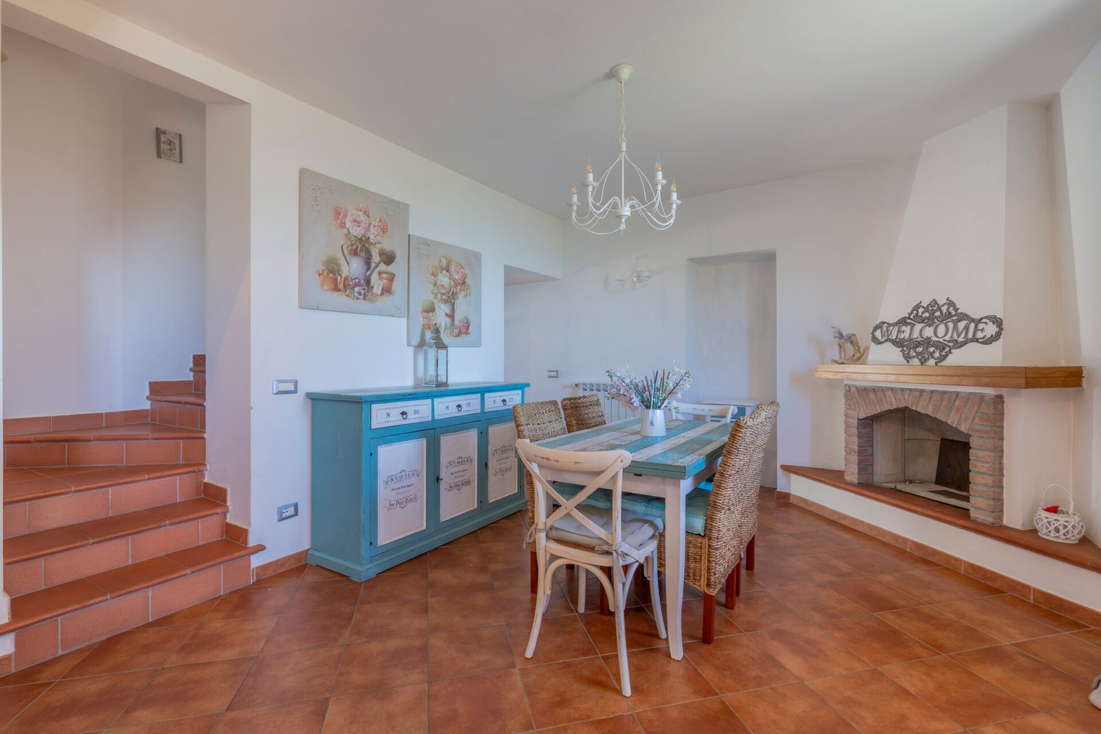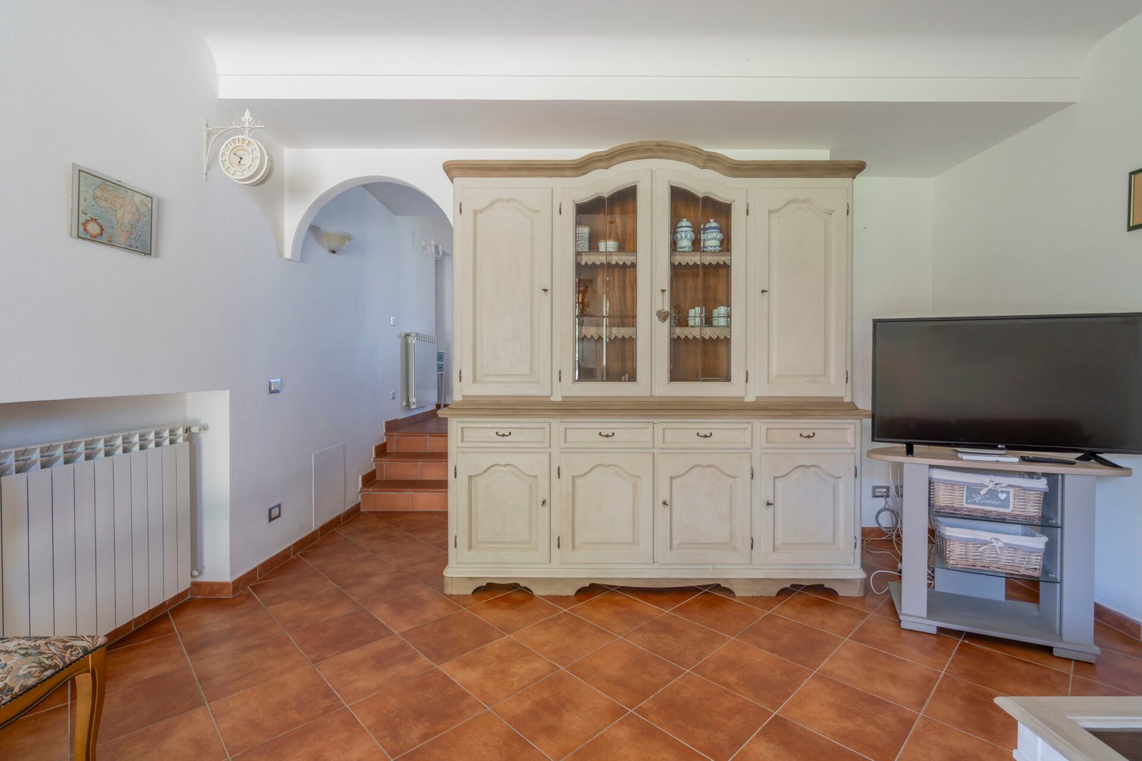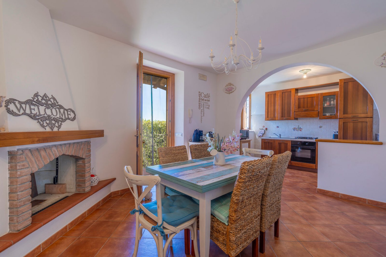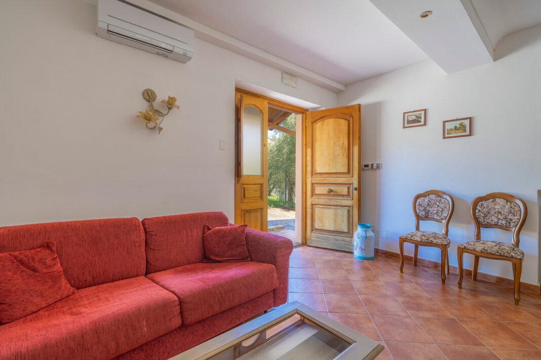 Un giardino/terrazza, appena fuori dalla porta della cucina, è attrezzato per mangiare all’aperto, mentre un altro giardino, molto più grande, è dotato di piscina (8×4 m, profondità 120 cm, aperta dal 1 giugno al 15 settembre) e gazebo arredato. C’è anche un uliveto e un frutteto.