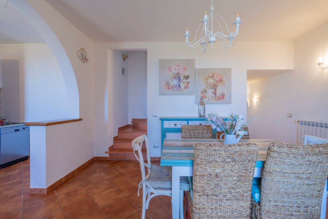 Al primo piano si trovano una camera matrimoniale con TV e vista panoramica sul mare, una camera doppia e un bagno con doccia. Dotazioni disponibili: aria condizionata (in soggiorno e nelle due camere) asciugacapelli, connessione internet Wi-Fi, zanzariere a tutte le finestre, lavatrice, asse e ferro da stiro, parcheggio privato.